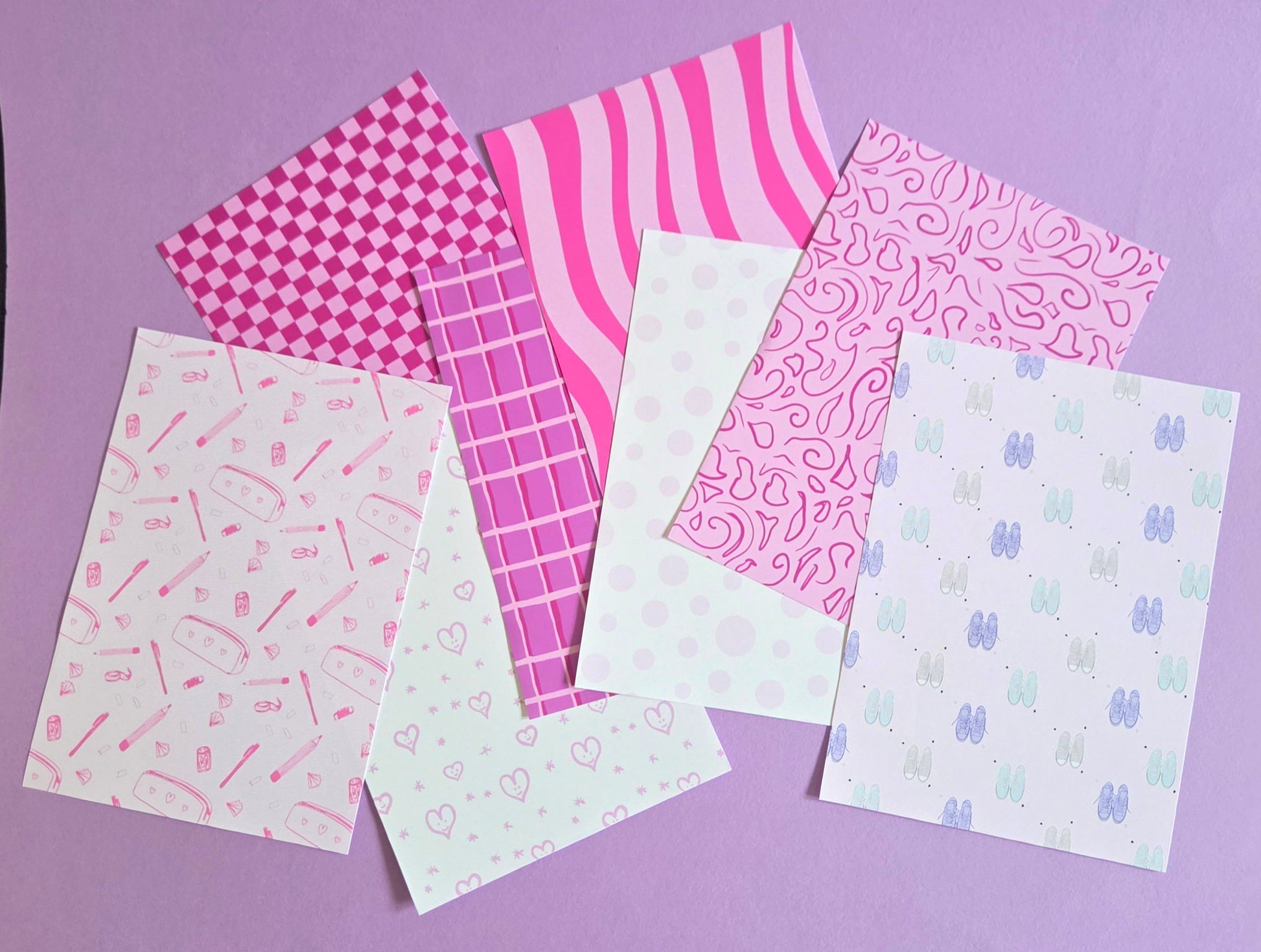 With a mix of cute, bold and aesthetic pink patterns—checkered, stripes, squiggles, hearts, dots and hand-drawn illustrated motifs—this pack gives you a beautiful variety of textures and styles to elevate your crafting.