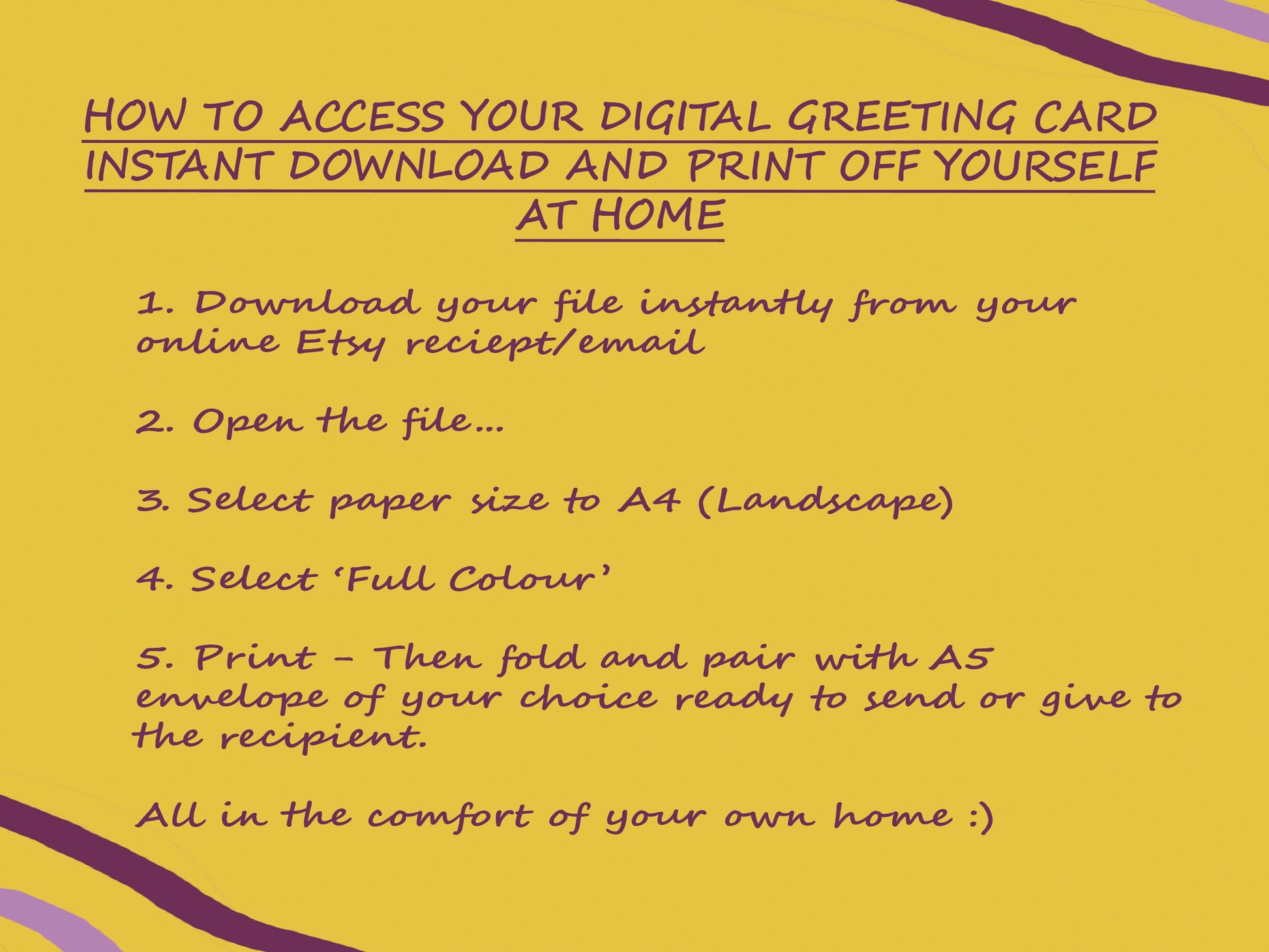 HOW TO ACCESS YOUR DIGITAL GREETING CARD INSTANT DOWNLOAD AND PRINT OFF YOURSELF AT HOME: