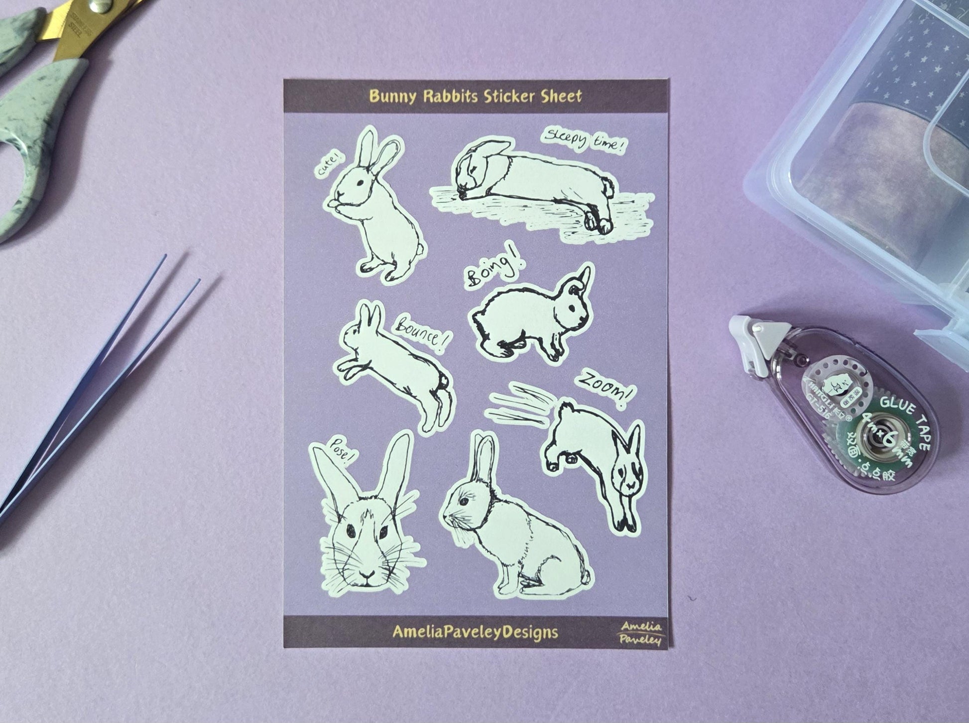 Bring a touch of adorable bunny magic to your stationery collection with this Bunny Rabbits Sticker Sheet!