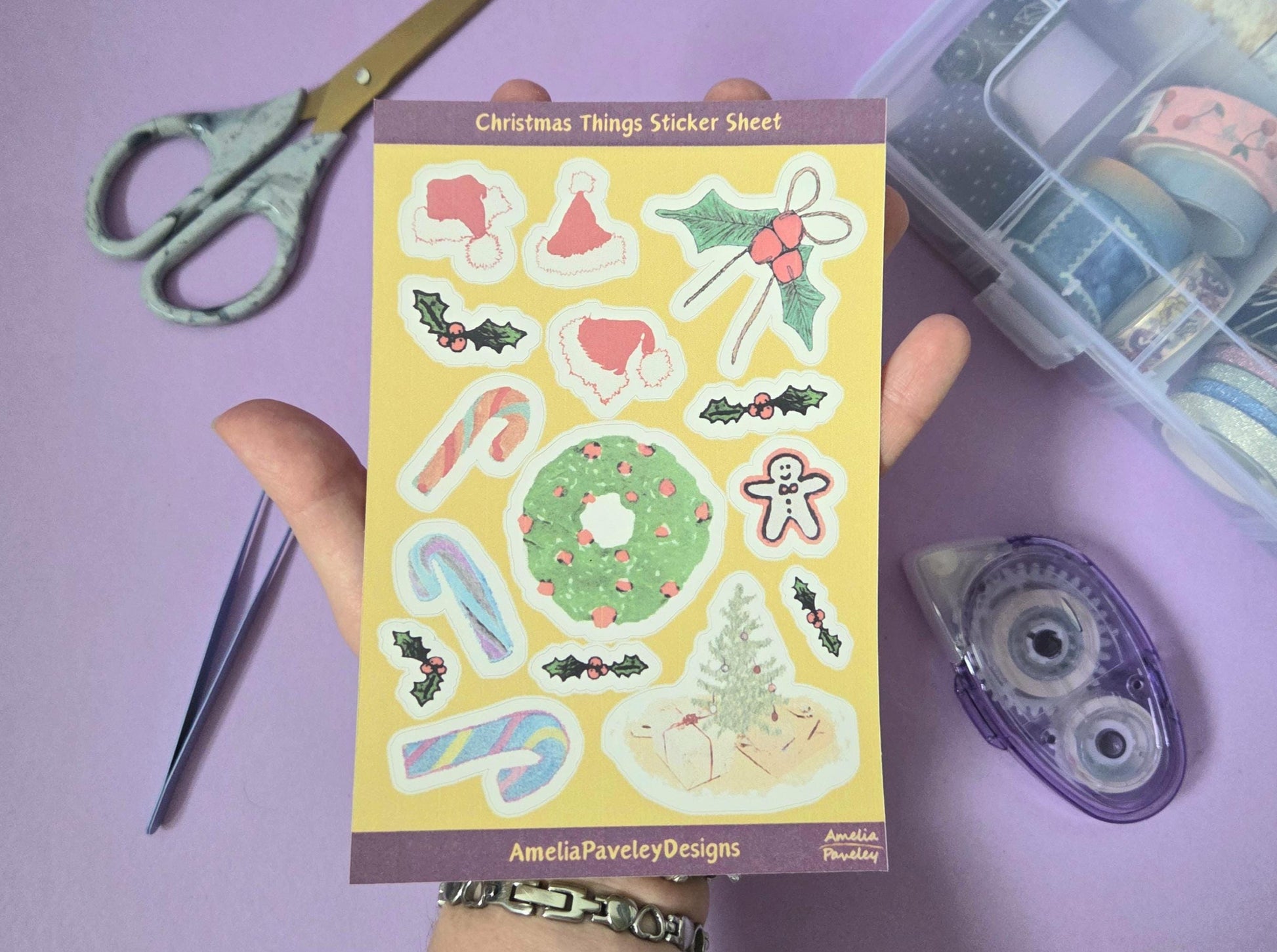 Christmas Things Sticker Sheet – Festive Xmas themed stickers for Planners, Junk Journals & Crafts