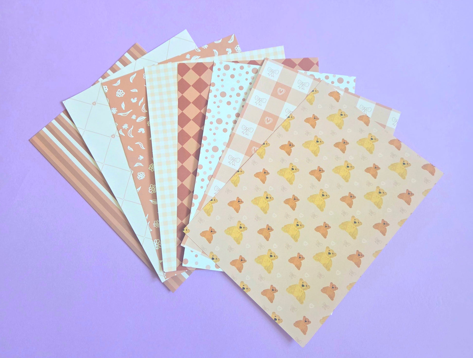 This neutral aesthetic scrap paper pack features a curated mix of coquette-inspired designs including bows, gingham, checks, polka dots and adorable teddy bear prints β ideal for creating warm, feminine and cohesive layouts in your creative projects.