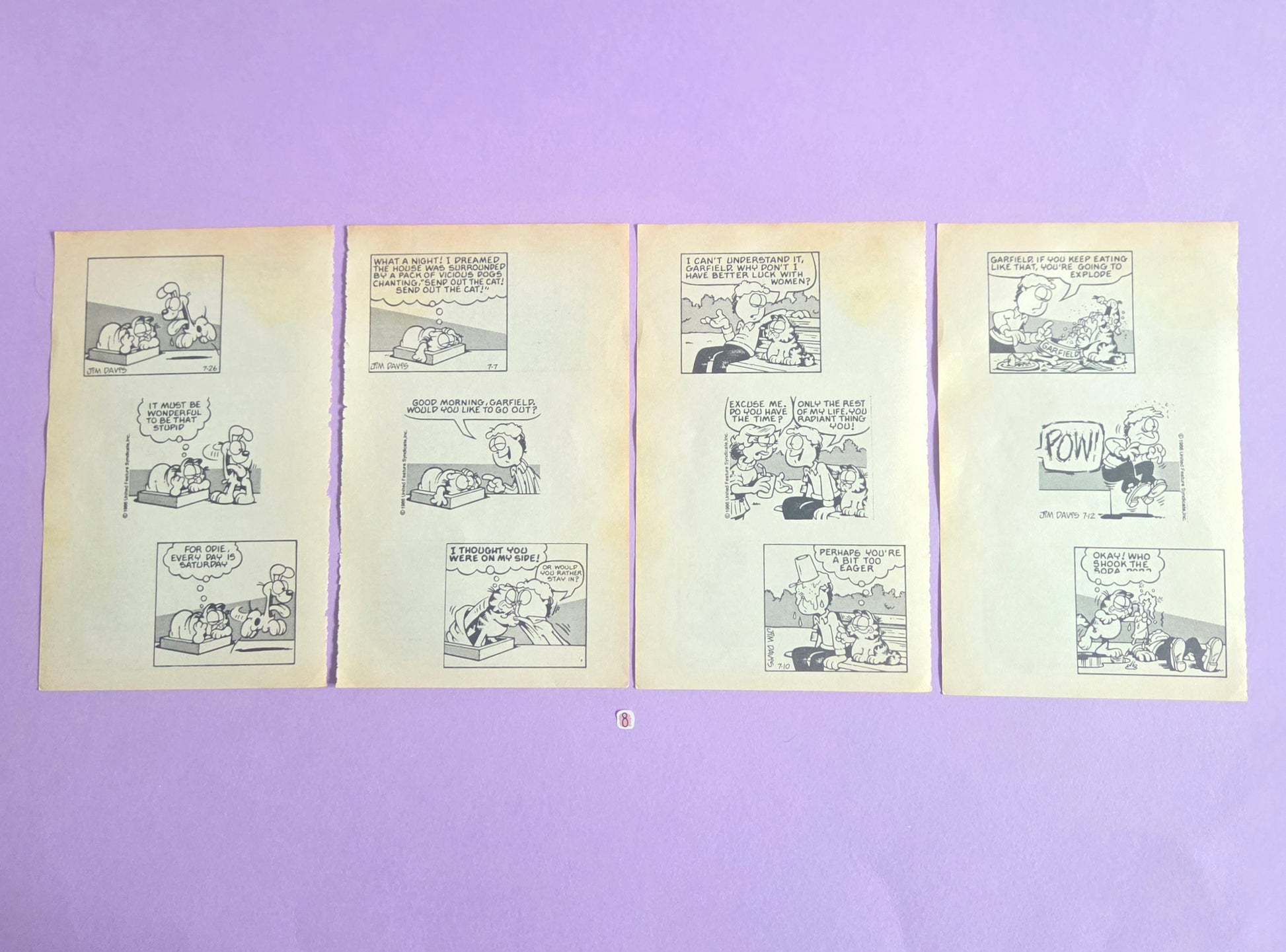 Vintage Garfield Torn Page Ephemera NO. 8 (4 pages)| Double-Sided Comic Book Pages for Junk Journals & Scrapbooking | Limited Edition