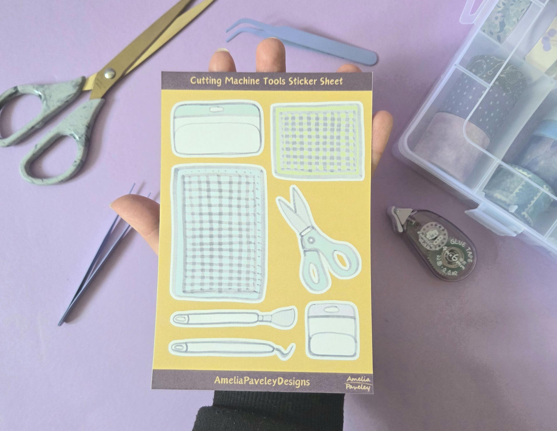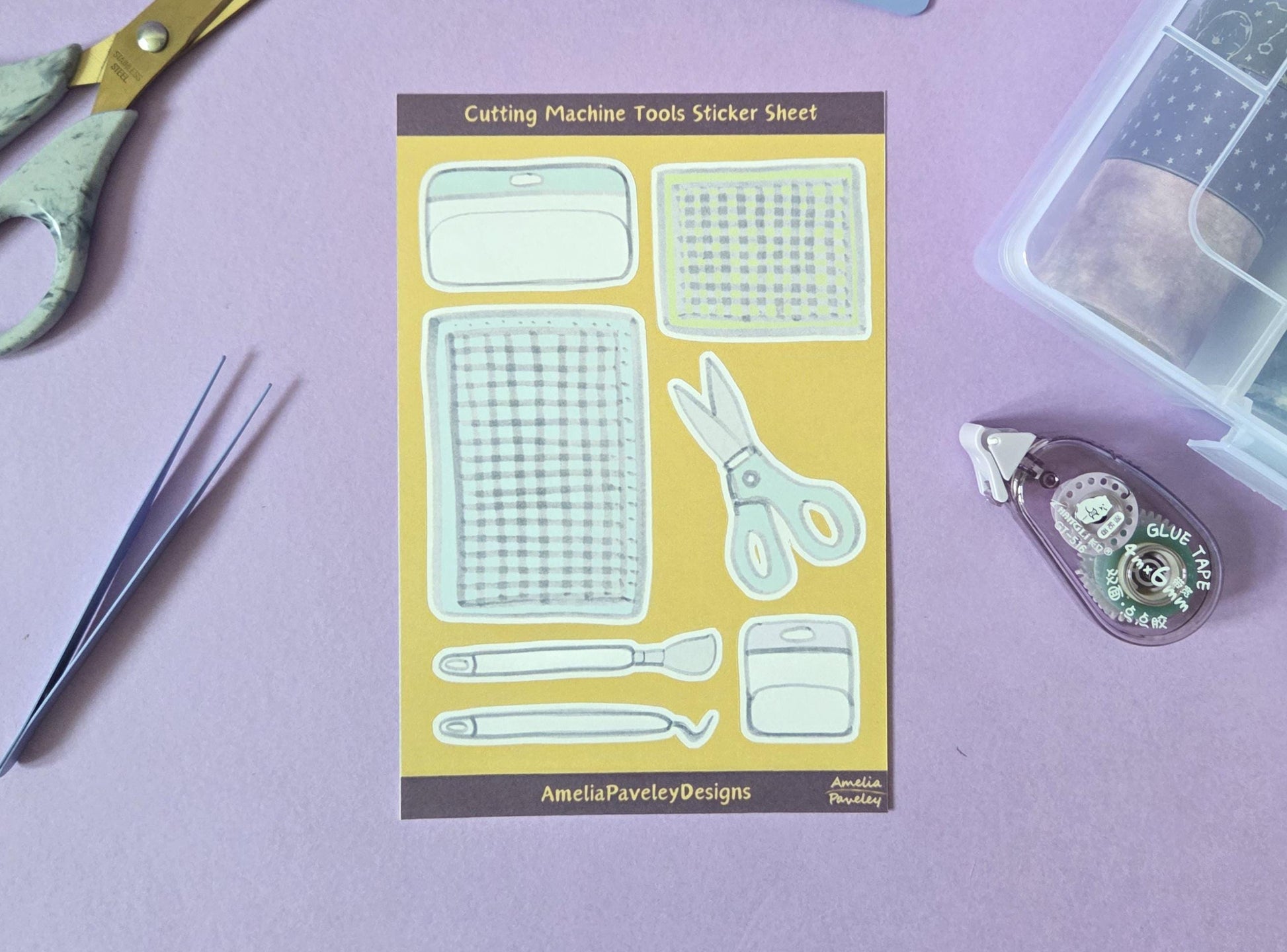 These adorable stickers feature all your favorite Cricut/general cutting machine tools, from mats to feeders and scrapers in a fun, whimsical style that's perfect for junk journaling, scrapbooking, planner decorating, and more.