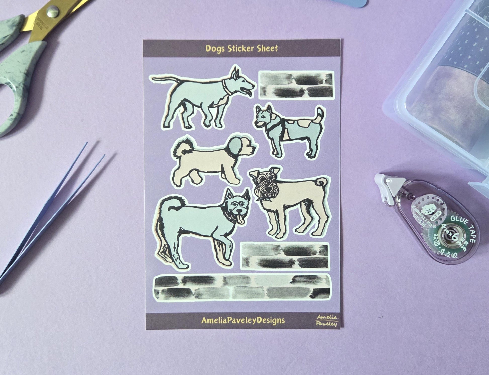 Dogs Sticker Sheet | Hand Drawn Dog Stickers, Cute Dog Planner Stickers, Scrapbooking Supplies, Stationery Gift for Dog Lovers