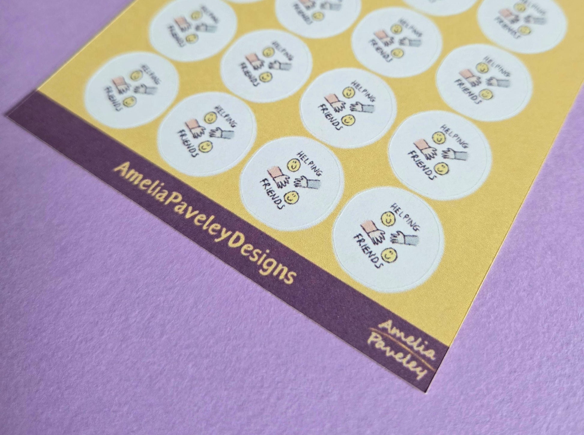 Each sticker features the uplifting message “Helping Friends†along with a friendly hand-drawn illustration. Use them on reward charts, homework diaries, classroom boards, or take-home certificates.