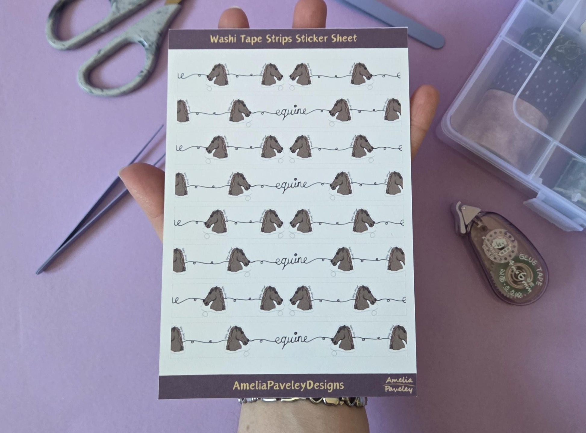 Horse equine washi tape pattern strips sticker sheet, inspired by my other hobby horse riding !