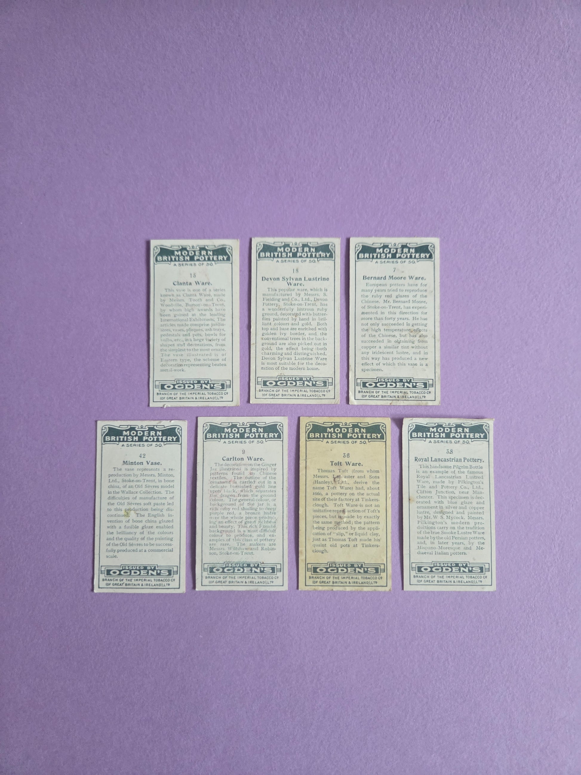 - Small bundle of authentic vintage Ogden’s Modern British Pottery cigarette cards