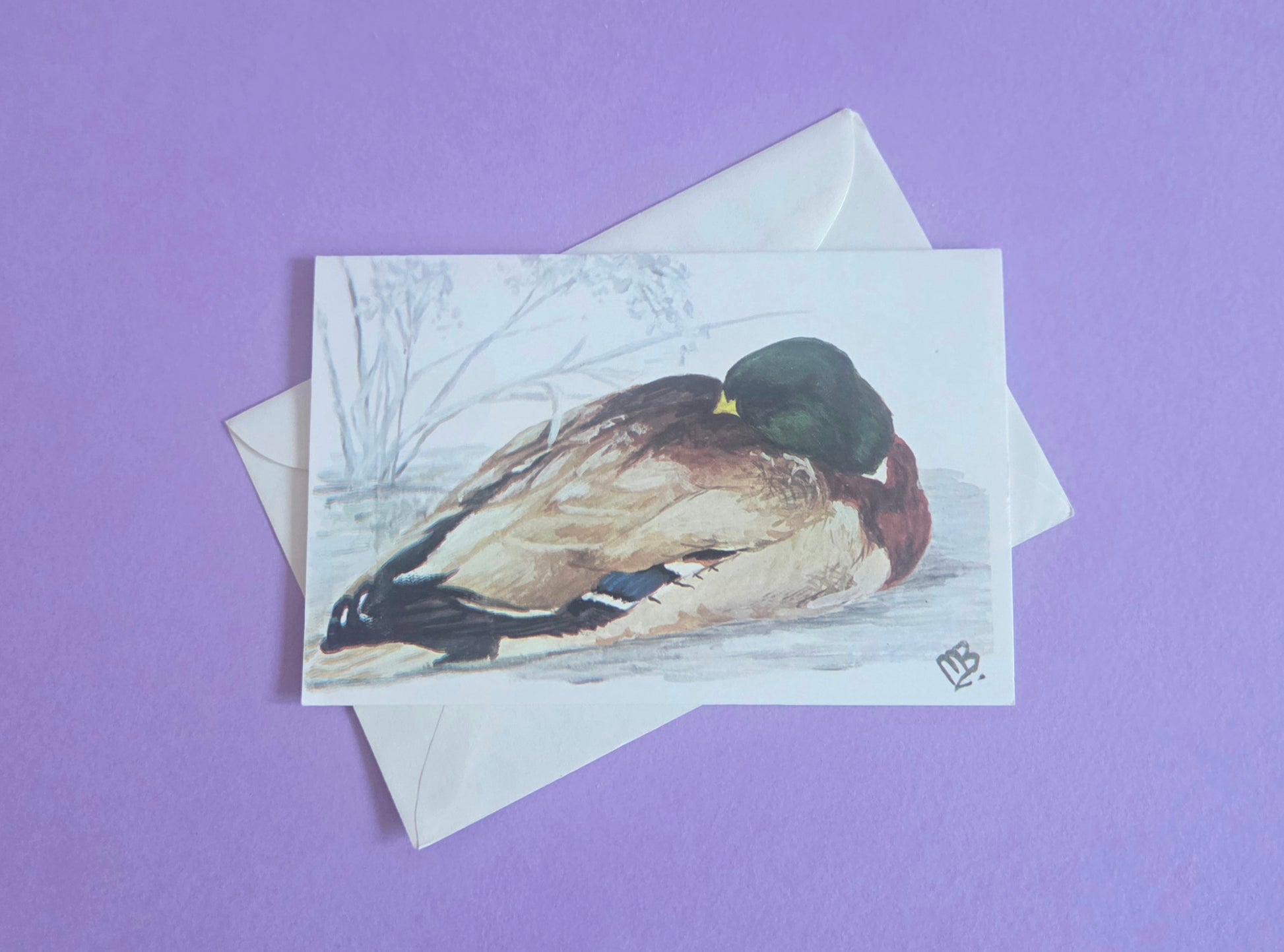 Vintage Duck Greeting Card – Hand-Painted Art Print by My Mum – A6 with Envelope