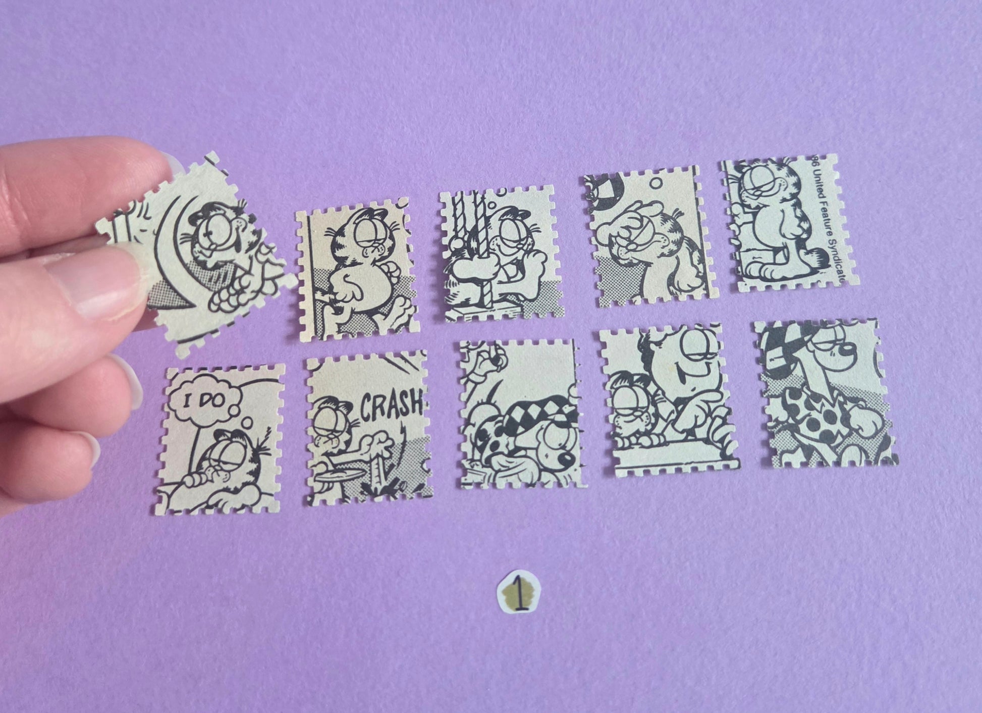 Vintage Garfield Stamp-Cut Ephemera - SET 1 | Repurposed Comic Book Pieces for Junk Journals & Scrapbooking | Limited Sets