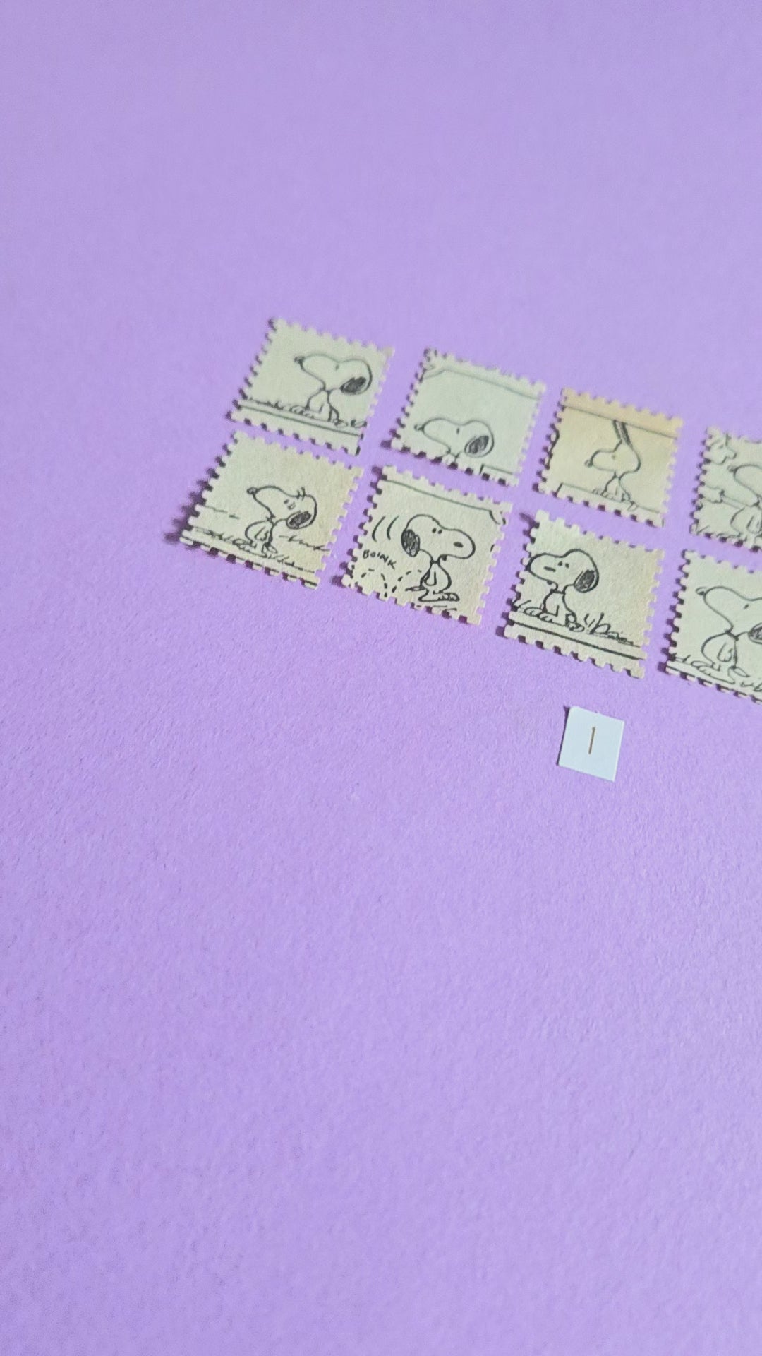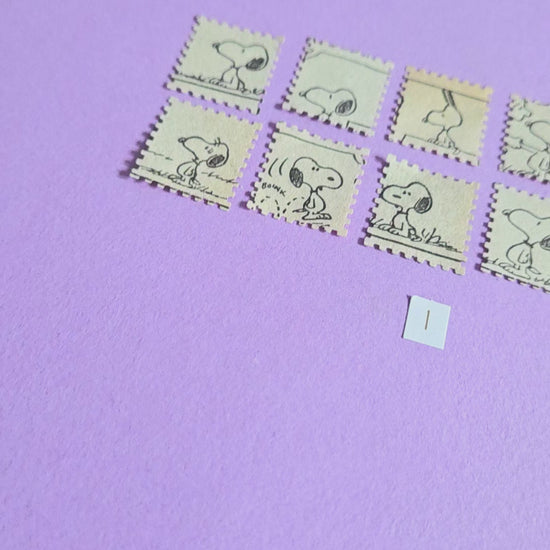 • A set of vintage Snoopy stamp-cut paper pieces