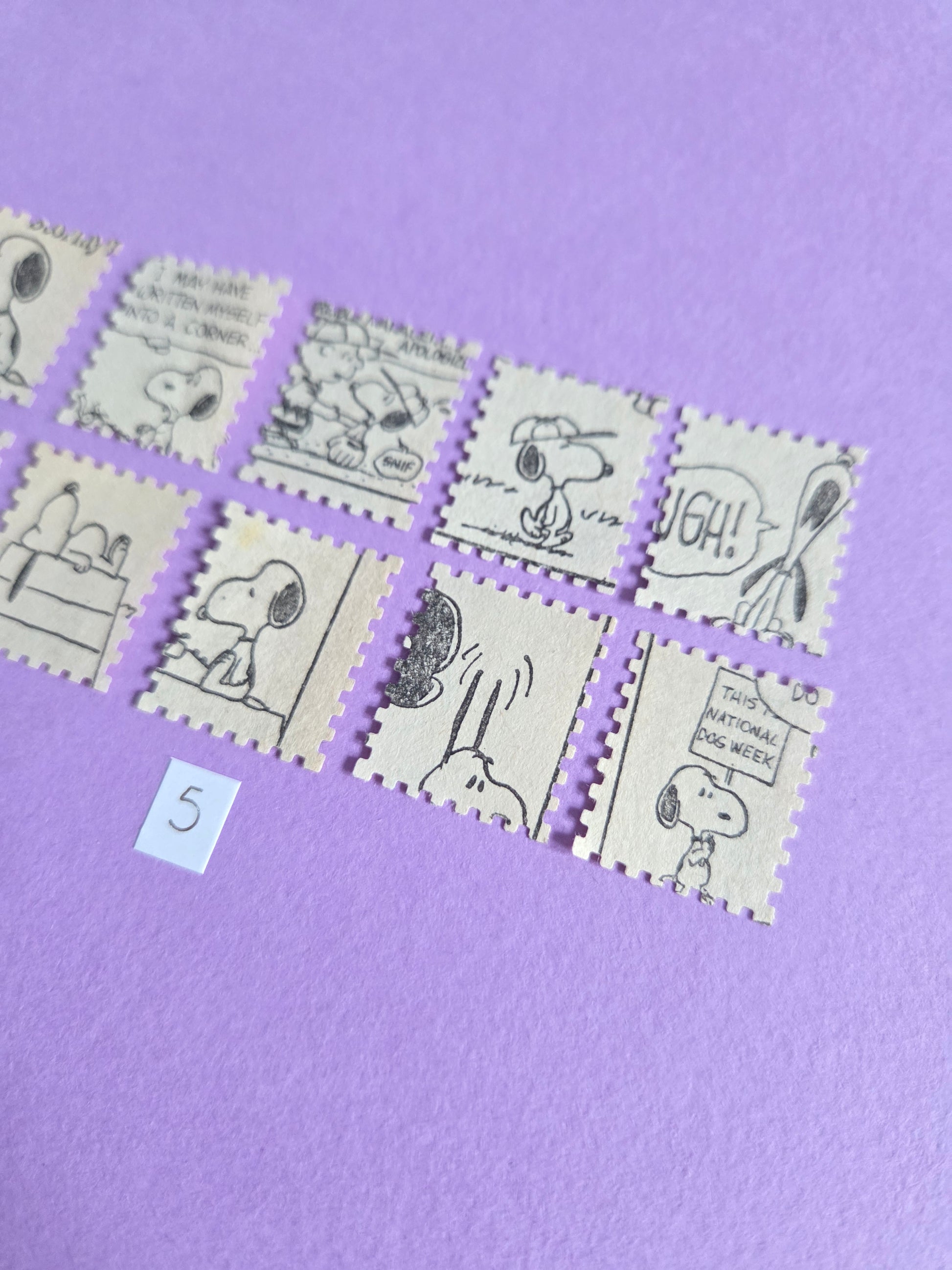 Vintage Snoopy Stamp-Cut Ephemera - SET 5 | Repurposed Comic Book Pieces for Junk Journals & Scrapbooking | Limited Edition
