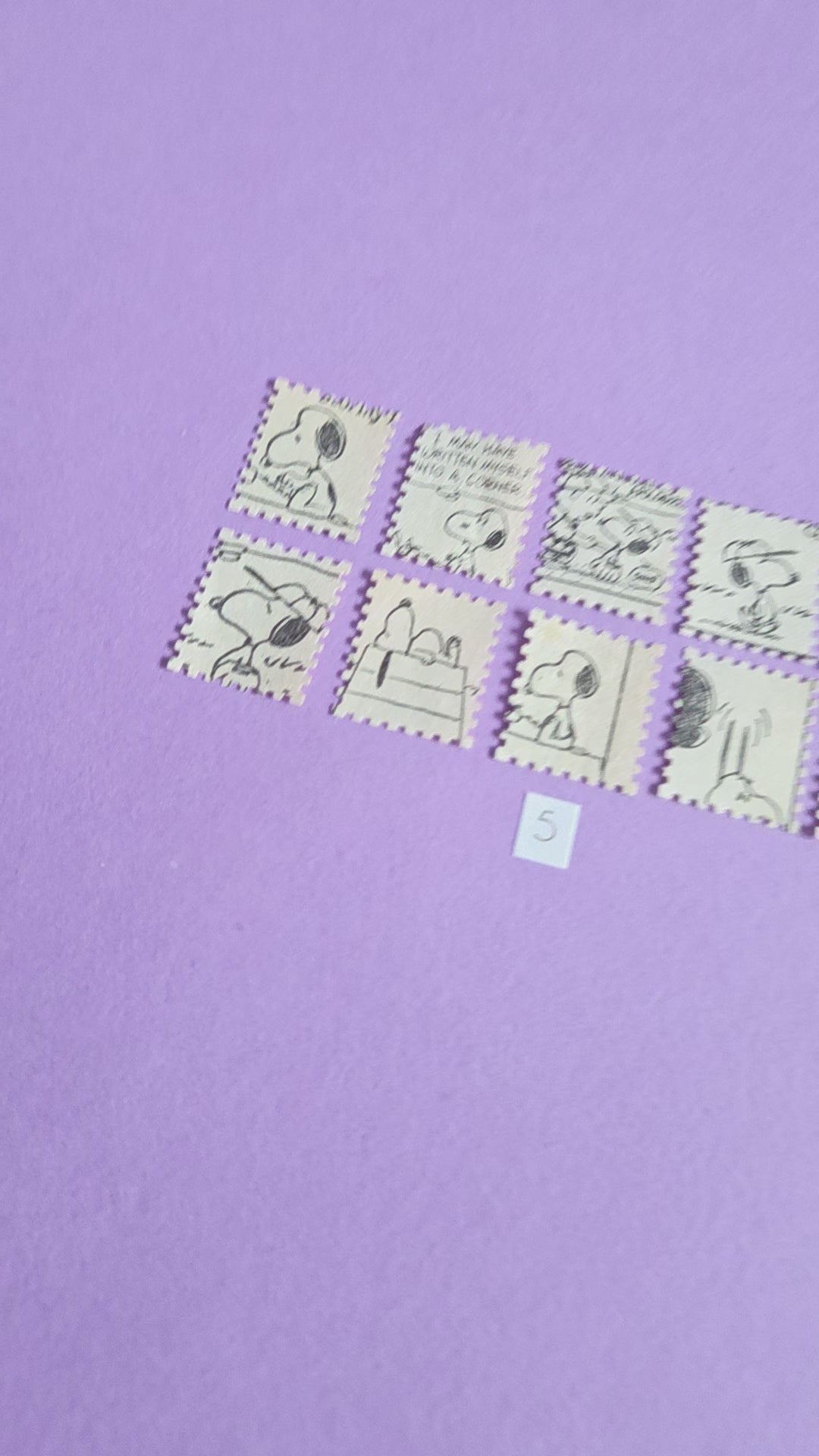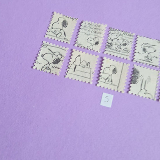 • A set of vintage Snoopy stamp-cut paper pieces