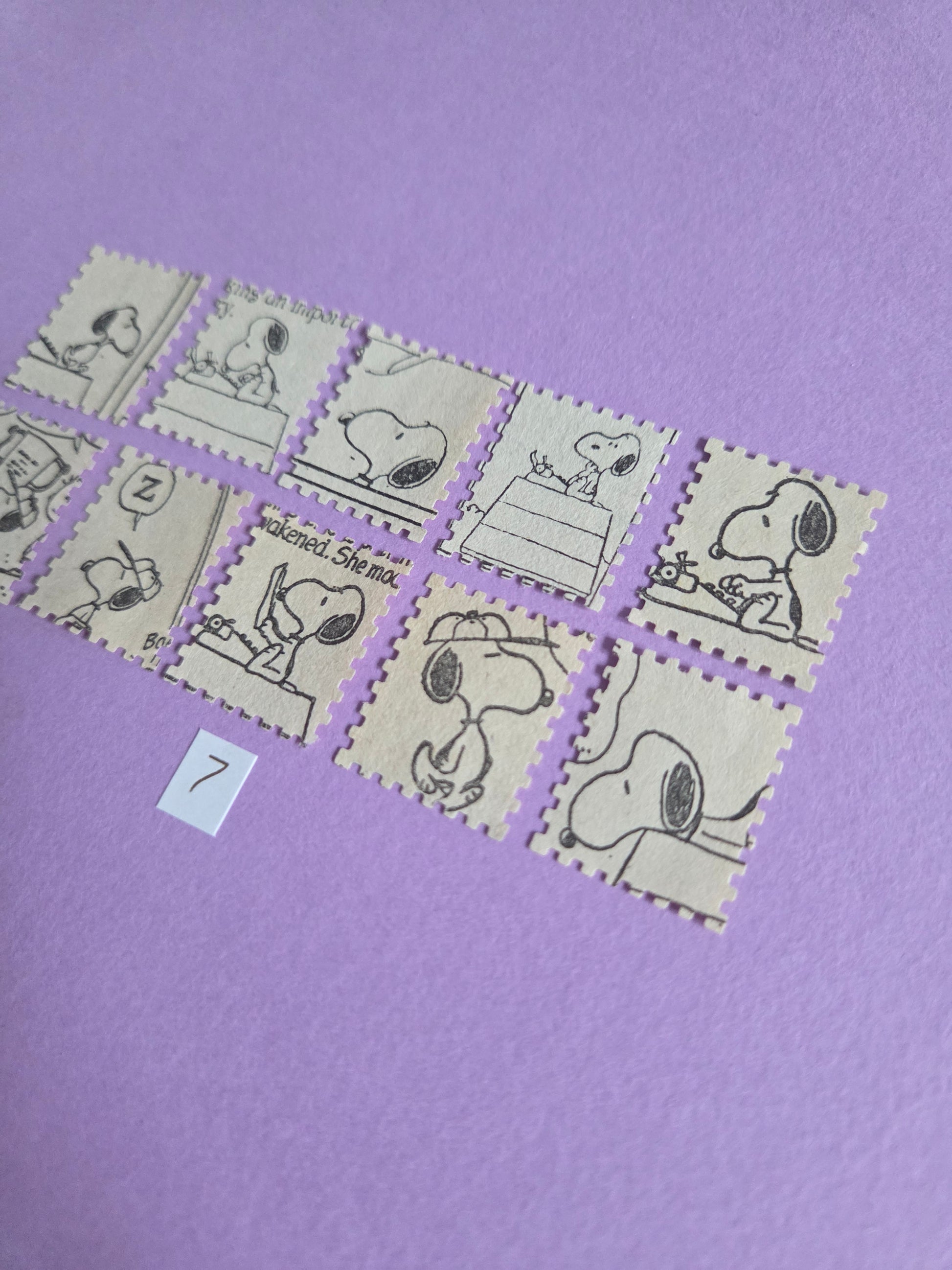 Vintage Snoopy Stamp-Cut Ephemera - SET 7 | Repurposed Comic Book Pieces for Junk Journals & Scrapbooking | Limited Edition