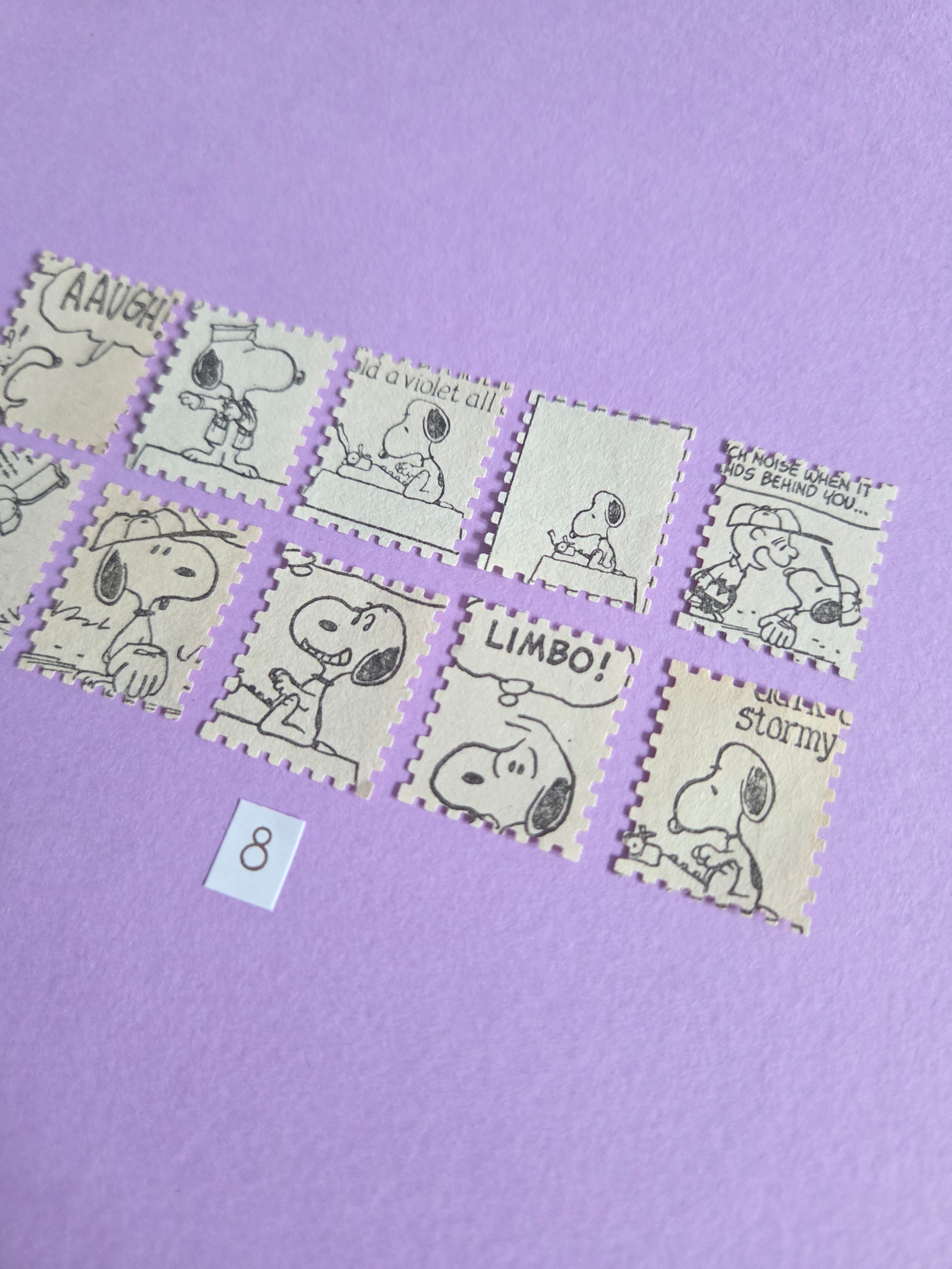 Vintage Snoopy Stamp-Cut Ephemera - SET 8 | Repurposed Comic Book Pieces for Junk Journals & Scrapbooking | Limited Edition